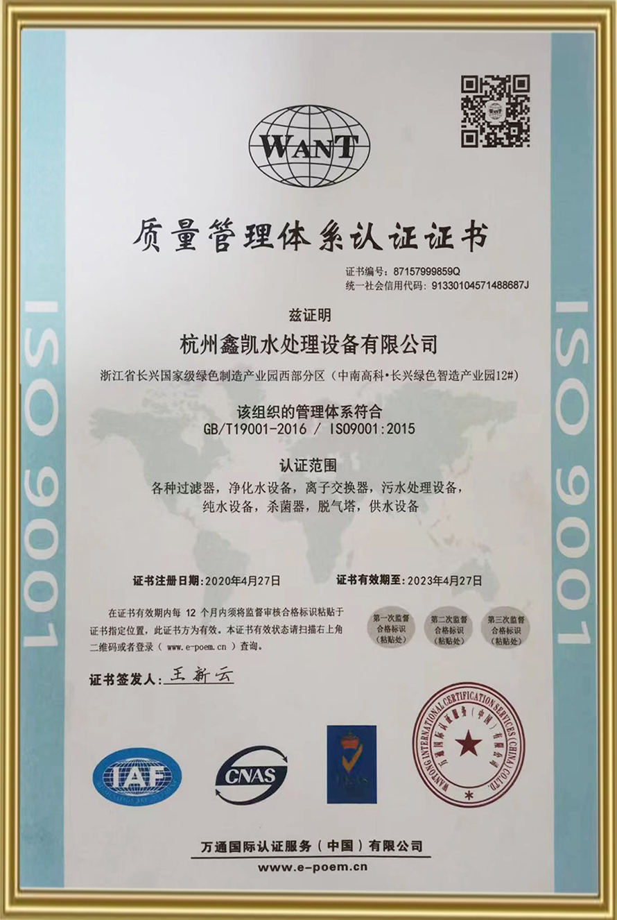 質(zhì)量管理體系認(rèn)證證書
